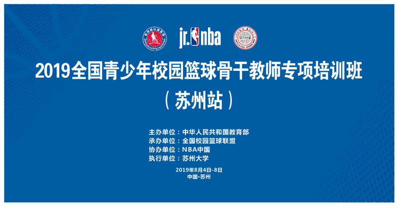为贯彻《国务院办公厅关于强化学校体育促进学生身心健康 全面发展的意见》精神,实施《中美人文交流框架协议下》教育部和NBA签署的助推中国校园篮球合作计划内容条款,持续推进《教育部办公厅关于校园篮球推进试点工作的通知》工作,大力推动校园篮球项目的改革与发展,受教育部体育卫生与艺术教育司的委托,由全国校园篮球联盟和NBA中国合作开展的“2019年全国青少年校园篮球骨干教师专项培训班(第一期)”首站由苏州大学承接。苏州大学为中国篮球协会篮球文化研究中心,早在1985年,便开始了篮球方向硕士研究生的招生,是我国最早培养篮球高层次人才的学府之一,苏州大学体育学院篮球课程教学团队为江苏省优秀教学团队,我校《篮球》课程为国家级精品课程资源共享课,并获得国家十一五、十二五规划教材。