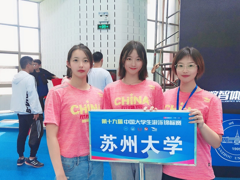 第十九届中国大学生游泳锦标赛于2019年8月27日下午在兰州大学榆中校区落下帷幕,经过四天的激烈比拼和精彩角逐,我校游泳队17体教朱莹莹获得女子乙组400米混合泳金牌、50米自由泳铜牌,17体教郭永慧获得女子乙组1500米自由泳银牌、800米自由泳铜牌,18体教于嘉妍和夏梦晗分别获得女子甲组50米仰泳银牌和50米自由泳铜牌,另外还获得了1个第四名,1个第五名,3个第七名和1个第八名的好成绩。其中,夏梦晗同学荣获“体育道德风尚奖”称号。