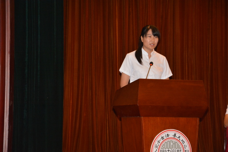 随后,苏州大学男子篮球队队员2018级运动康复专业叶子言和国家奖学金、国家励志奖学金、苏州大学三好生获得者2019级推免研究生祁豫分别发言。叶子言和新生分享了自己第一年是如何适应大学生活、找到目标的。他建议同学们树立自信,学会学习,积极参与志愿服务工作,尽快适应大学生活。祁豫同学向学弟学妹们分享了本科时学习生活的经验,为研究生生活制订了学习目标。