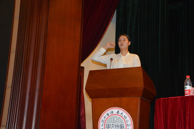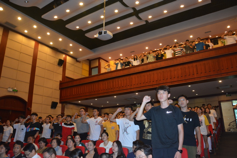 最后,2019级体育教育硕士研究生潘辰鸥带领全体新生宣誓:秉承“养天地正气 法古今完人”的校训,诚实守信,严于律己;勤俭节约,艰苦奋斗;志存高远,坚定信念……为实现中华民族伟大复兴而努力奋斗!