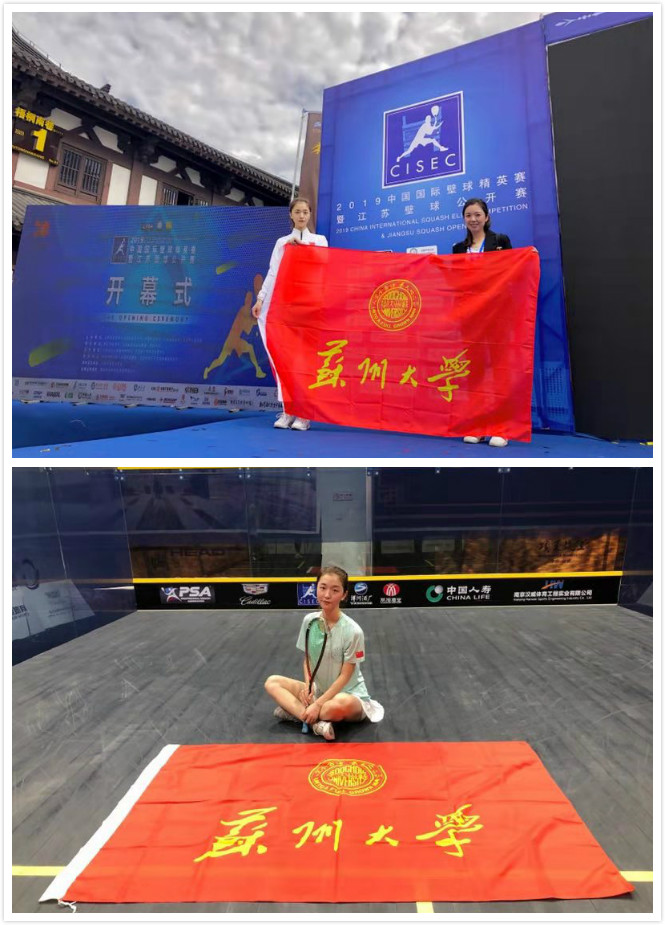 2019年9月22日,由国家体育总局小球运动管理中心、中国壁球协会、江苏省体育局、宿迁市人民政府主办,江苏省壁球运动协会、宿迁市体育局、宿迁学院承办的中国国际壁球精英赛暨江苏壁球公开赛在项王故里景区圆满结束。本次赛事规格高、参赛国家多、活动形式丰富,是广大壁球爱好者提高水平、收获友谊的舞台。苏州大学体育学院何芯茹同学在此次大赛中荣获第一名!