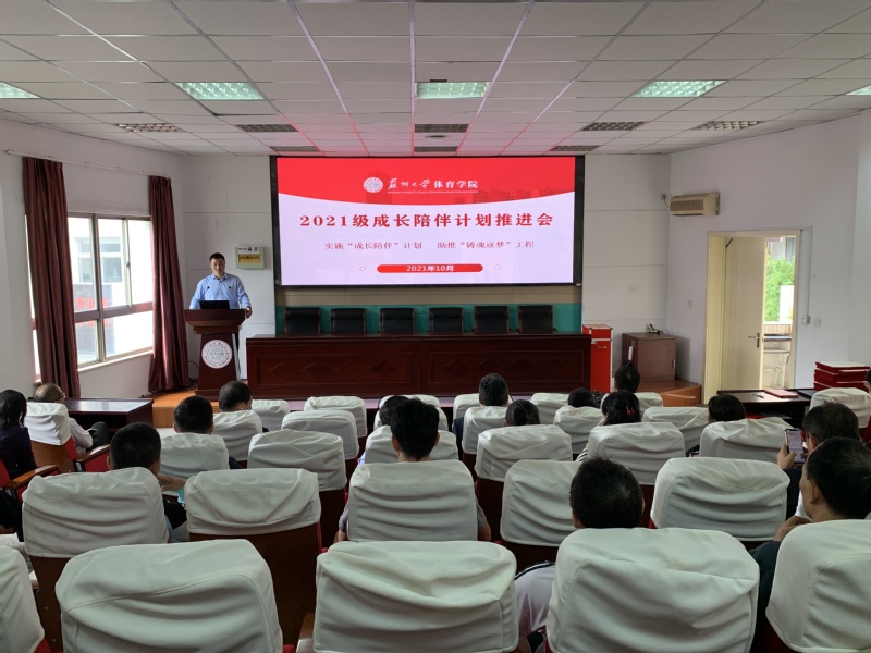 10月13日13:30,体育学院本科生成长陪伴计划推进会在文辉楼220召开,院党委书记朱建刚,党委副书记、副院长丁海峰,各系主任,全体辅导员及40名校内成长陪伴导师参加会议。
