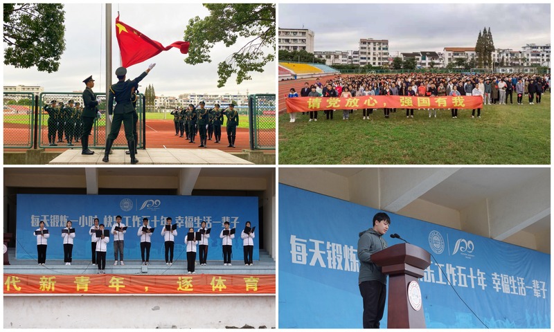 升旗仪式结束后,全体师生面向主席台欣赏了由本科生代表集体朗诵的庆祝中国共产党成立100周年大会上的献词《请党放心,强国有我》,献词中回溯了中国共产党波澜壮阔的百年历程和祖国走向富强的荆棘之路,鼓舞广大青年铭记历史,牢记初心,坚定理想,砥砺前行。献词最后,全体师生一同喊出“请党放心,强国有我”的铮铮誓言,诵一篇献词,表一份心意。