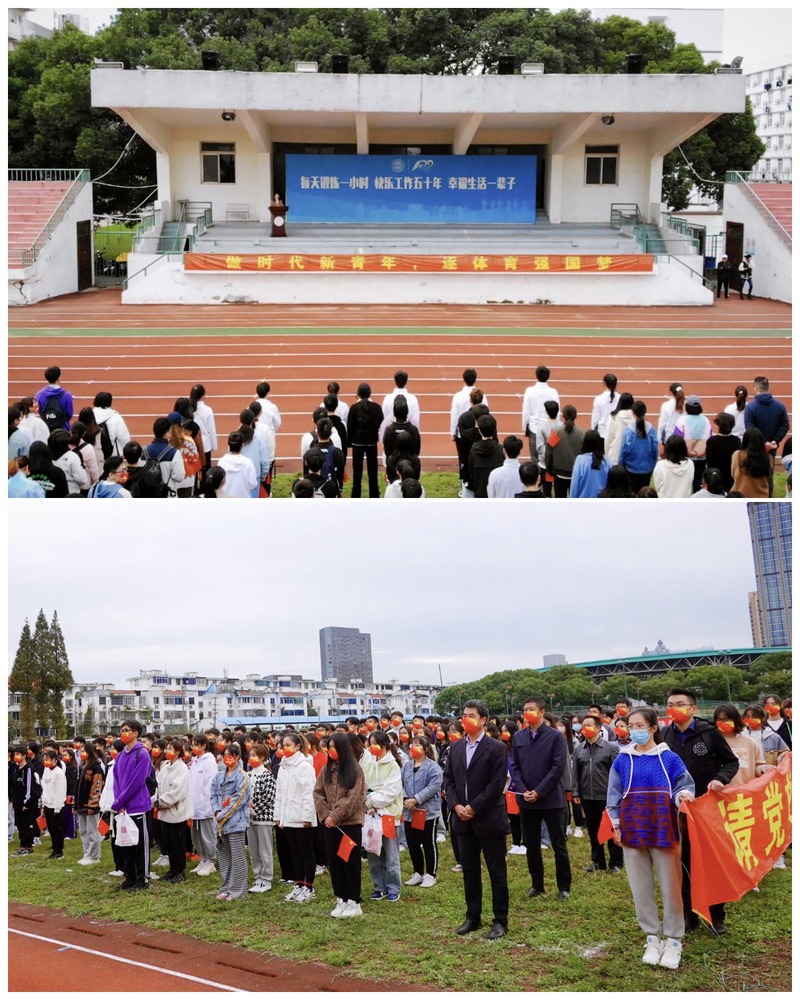 2021年10月18日,体育学院在东区田径场举办“做时代新青年,逐体育强国梦”主题升旗仪式暨信仰公开课。体育学院党委书记朱建刚,院长王国祥,副院长陶玉流、李龙,全体辅导员、班主任出席本次活动。体育学院511名本科生、201名研究生,共712名学生共同参加。活动由商仪主持。