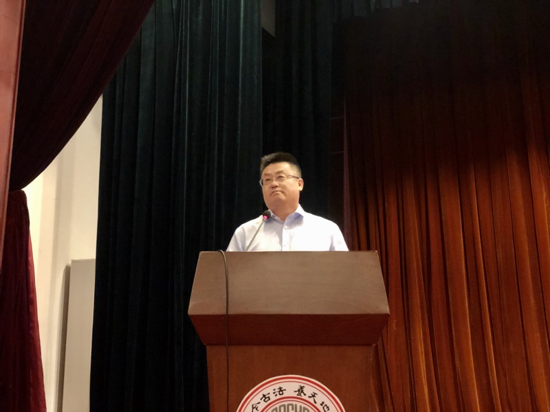 博士生导师樊炳有教授代表教师做新生寄语。樊老师从教三十年,用34与10两个数字,将多年来的学习经验、从教心得、人生感悟与同学们进行了分享,并希望同学们做只争朝夕、不畏艰难、追求卓越、心怀感恩,做有德有品的时代新人。