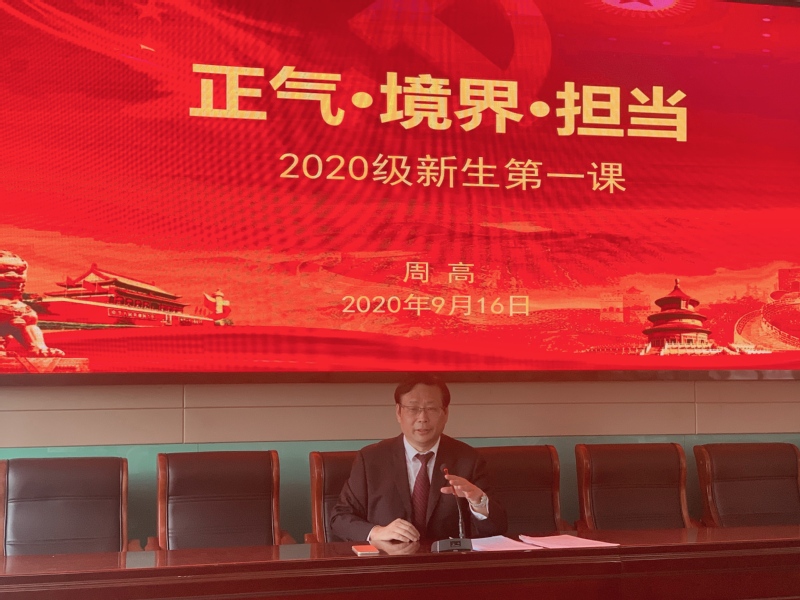 9月16日上午,校党委常委、总会计师周高以“正气、境界、担当”为题,为我院20级新生带来一场精彩的“开学第一课”。院长王国祥、党委书记朱建刚等共同聆听。