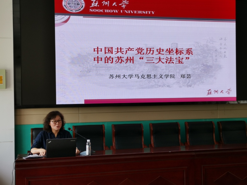 9月16日下午,我院党委邀请我校马克思主义学院郑芸副教授为全体教职工党员与学生党员讲授了题为《中国共产党历史坐标系的苏州“三大法宝”》的辅导报告。