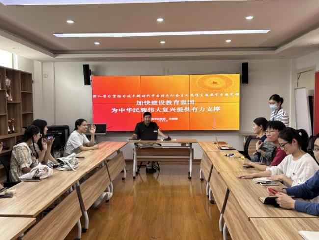 人才引领驱动,建设教育强国。首先,朱建刚书记为大家讲授题为《加快建设教育强国,为中华民族伟大复兴提供有力支撑》的主题党课,阐明了教育强国的根本性质、根本遵循、本质要求、重要任务等核心问题,剖析了教育优先发展、科技自立自强、人才引领驱动的辩证关系,最后告诫广大党员,要牢记为党育人的初心,坚定为国育才的立场,不负时代,不负韶华、志存高远,脚踏实地,汇聚起为党育人、为国育才的磅礴力量。