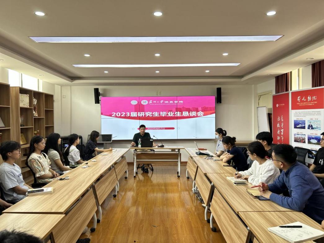 2023年6月8日下午,我院于文辉楼213开展毕业研究生代表座谈会,学院党委书记朱建刚、组织员黄嘉成、研究生辅导员付冰、毕业研究生党员代表、优秀毕业生代表及学生干部代表参加会议。会议分为离校前“最后一堂党课”和恳谈会两部分。