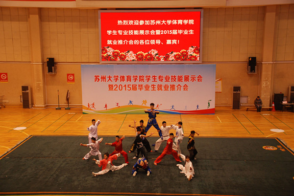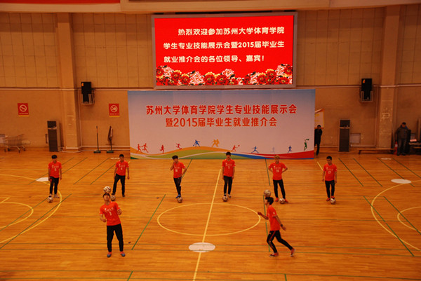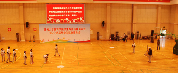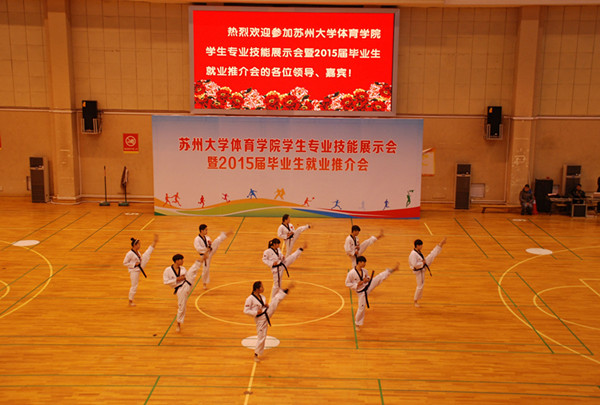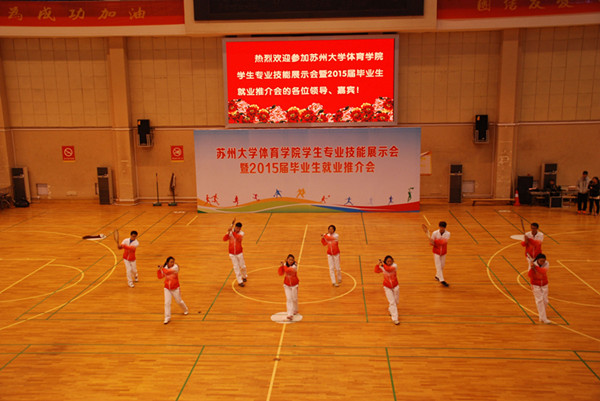 展示会分为师范生教学基本功、体育专业技术技能、文艺特长三部分。师范生教学基本功展示,先后进行了体操口令、队形队列、广播体操、武术健身操以及说课的展示,动作整齐,声音洪亮,姿势刚健有力,充分展示了体育生的风采。体育专业技术技能分别就田径、体操、篮球、排球、足球、羽毛球、乒乓球、网球、慢投垒球、健美操、武术、跆拳道、健身气功、轮滑、舞狮和运动康复等十六个专项的展示,其中乒乓球短短数分钟的反手对推技术、正手对攻技术、左推右攻技术、侧身位一拉一削技术和正手扣机会球技术引起阵阵喝彩;田径的快频跑、高抬腿、车轮跑、后蹬跑、跨步跳,跳高起跳、跳远腾空步、背向滑步推铅球和标枪投掷步技术,跨栏的起跨、攻栏以及完整技术的展示充分展示了田径作为运动之母所必备的扎实的基本功;女排的传、垫、扣发球技术,足球的颠球、过人与打门技术,男篮的扣篮动作,更是引起掌声一片;花样轮滑、跆拳道品势表演、健身气功、健美操等表演更是精妙绝伦。运动人体专业的同学们展示了如何现场急救以及运动员剧烈运动后的放松和按摩技巧;民族传统体育专业学生展示的陈氏太极、长拳、刀、枪、剑、九节鞭等套路震惊全场,精妙绝伦的舞狮表演,让我们感受到中国传统文化的博大精深。最后部分的文艺特长展示,舞蹈《秦王点兵》曾多次代表学校前往美国、柬埔寨、老挝、维也纳等国进行表演,经典原创舞蹈《桥墩》曾多次参加全市舞蹈比赛,曾获得江苏省艺术展演艺术专场金奖,全国艺术展演金奖;歌曲串烧,街舞曼妙,歌声抑扬顿挫,充分展示了体院学子的多才多艺。