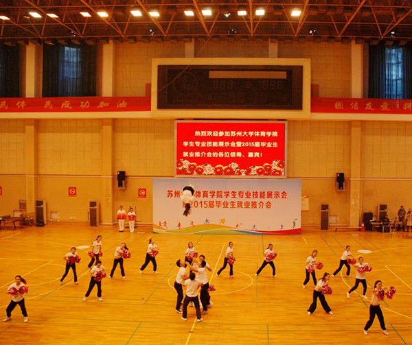 整个展示会体育馆内掌声迭起,气氛活跃。表演学生随着动感的音乐展示出各自的“看家本领”,扎实的基本功和不时的高难度动作引起了场内观众们的一阵阵叫好声。体育学院研究生李秋梦说:“这是她们平时必练的基本功,但第一次在这么多观众面前做操,还是有点小紧张,这次活动不仅是对他们专业技能进行考核,也是心理素质的考验,今后我们要给那么多学生上体育课,这两方面能力缺一不可。”