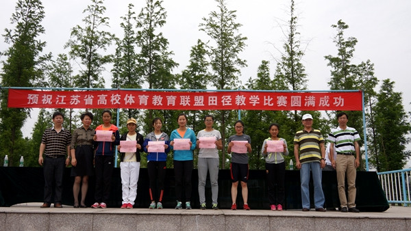 最后南京师范大学泰州学院体育与健康学院曹艳杰副院长宣布了比赛成绩,并组织进行了各单项的颁奖典礼,苏州大学体育学院李伟文副书记宣布本届田径教学比赛胜利闭幕。