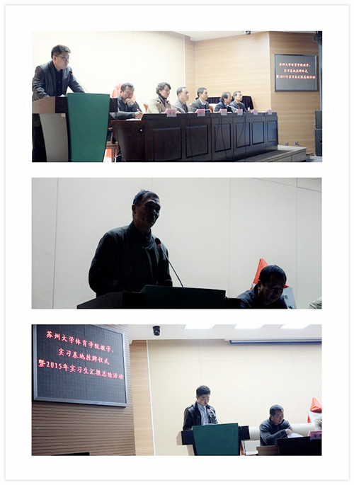 实习临近尾声,各项实习工作依然有序进行中。我院实习公开课暨新区二中实习基地挂牌活动于11月10日下午如期举行。学院领导、苏大教务部领导、各实习带队教师、学院教师代表、实习生代表、2013级体教学生、2015级研究生等130余人在实习实践办公室的组织下前往观摩。