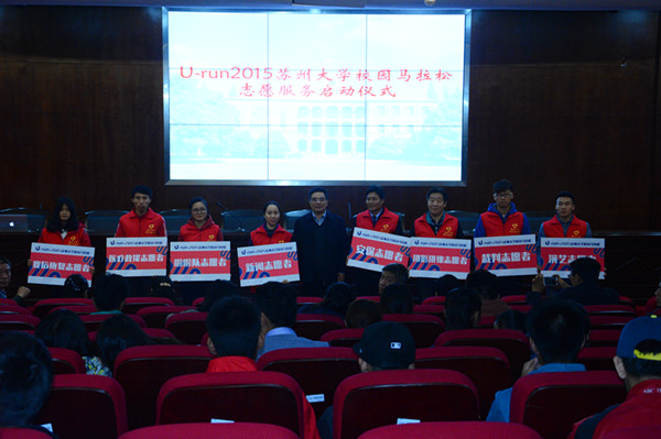 为了配合做好本次校园马拉松的后勤服务工作,苏州大学向全校招募了400多名师生志愿者参与服务工作,包括医疗救援志愿者、新闻志愿者、摄影摄像志愿者、裁判志愿者、安保志愿者、啦啦队志愿者、赛后恢复志愿者、演艺志愿者,力争为参赛选手献上一次难忘的体育运动盛宴。