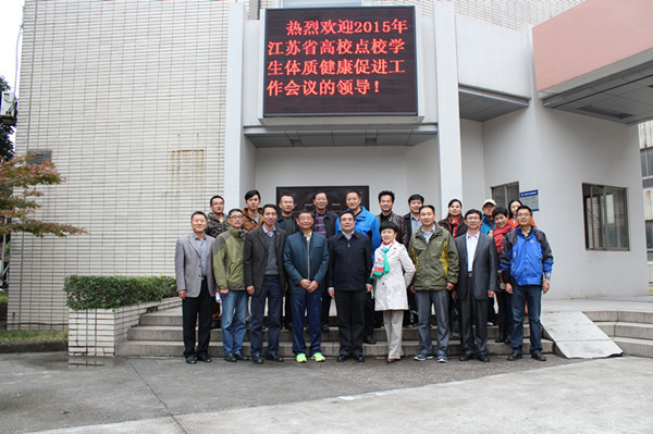 11月13—14日,2015年江苏省学生体质健康监测点校高校学生体质健康监测与促进工作会议在我院召开。江苏省教育厅体卫艺处副处长金剑,省体质健康监测与行动促进中心王正伦教授、陈海波教授、苏立新教授、张蕴琨教授,省学生体质健康研究中心史曙生教授、刘东升老师、王海波老师,高校点校——东南大学、扬州大学、江苏海事职业技术学院、徐州工程学院、江苏科技大学、盐城师范学院、徐州工业职业技术学院、苏州大学参加本次会议;苏州大学副书记、副校长江作军教授,体育学院院长陆阿明教授应邀参加会议,会议由省体质健康监测与行动促进中心陈海波教授主持。