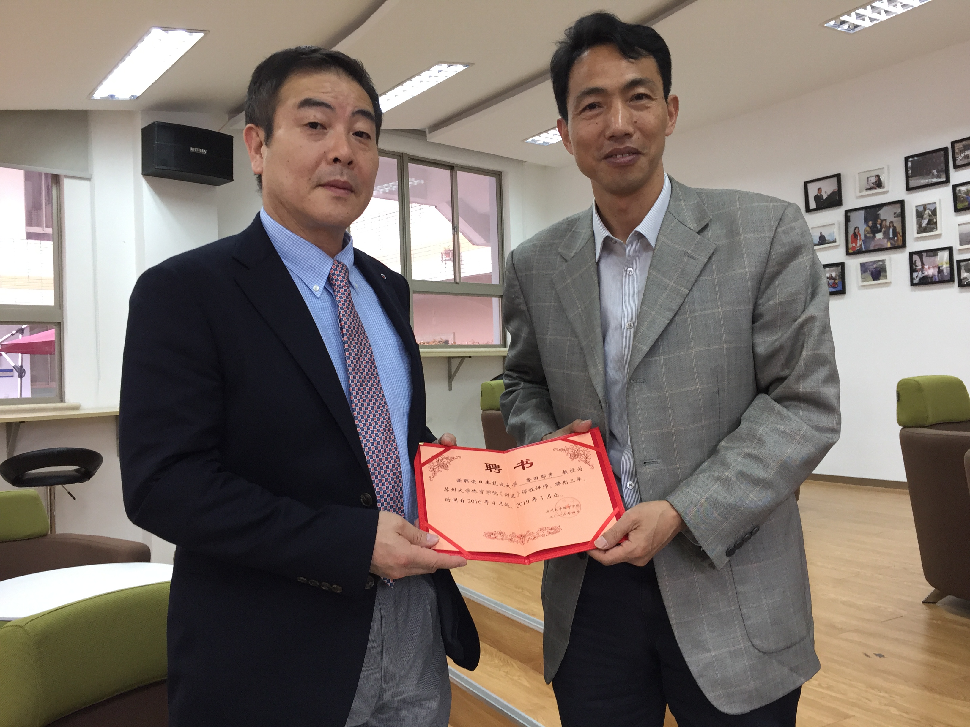 剑道是传统的竞技性器械项目,能培养练习者的敏捷性、灵巧性和瞬间反应力,提高练习者的社会适应能力和尊重对方、重视礼仪的武道。剑道不仅能强健身体,同时也能提高练习者的内在涵养和个人修养。体育系为了丰富课程,开阔学生国际视野,感受世界体育多元化,自2016年起引进《剑道》课程。为提高教学质量,体育学院聘请日本筑波大学对外交流中国事务会员、日本筑波大学香田郡秀教授(世界剑道锦标赛冠军,教士八段)为特聘教师。5月20日晚7:30,香田郡秀教授和原国家剑道队队长、苏州大学体育学院杨敢峰老师在东区篮球馆进行《剑道》课开课仪式和第一次课。体育教育专业200余名学生参加了开课仪式和第一次剑道课。