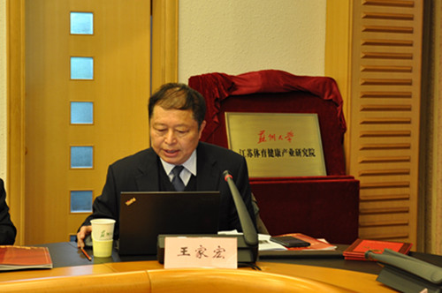 执行院长王家宏教授作了工作报告,重点介绍了研究院的成立宗旨、组织机构、研究任务等。