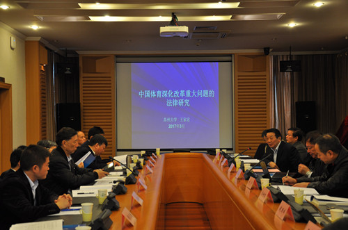 3月25日,苏州大学承担的国家社科重大课题“中国体育深化改革重大问题的法律研究”在我校举行了开题报告会。来自全国各地的知名专家学者和课题组相关成员共40余人参加了本次开题报告会。江苏省哲学社会科学规划办公室汪桥红副主任作为主管单位领导也出席了本次会议。