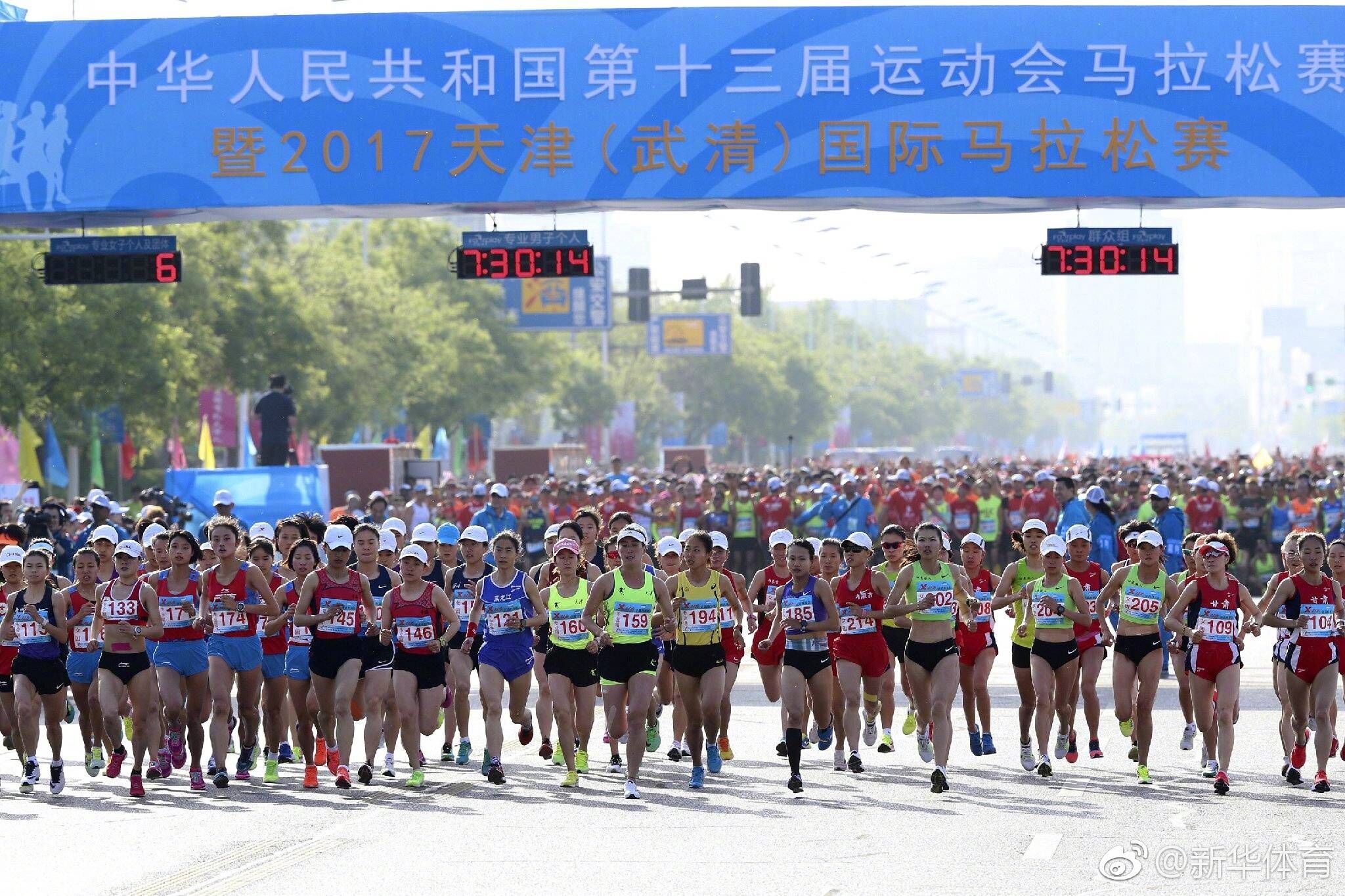 4月29日7时30分,第十三届全运会马拉松赛暨2017天津(武清)国际马拉松赛在天津市武清区正式鸣枪起跑。本次马拉松赛可以说是第十三届全运会的“揭幕战”,作为本届全运会专业组和群众组别的双“首金”项目,全运会马拉松项目吸引了全国的顶尖专业运动员和部分业余选手参赛。比赛分设全运会马拉松专业组男子、女子、女子团体;群众组男子、女子全程马拉松5个项目。除了专业组120余人外,群众组参与人数近5000人,迷你马拉松6000人。