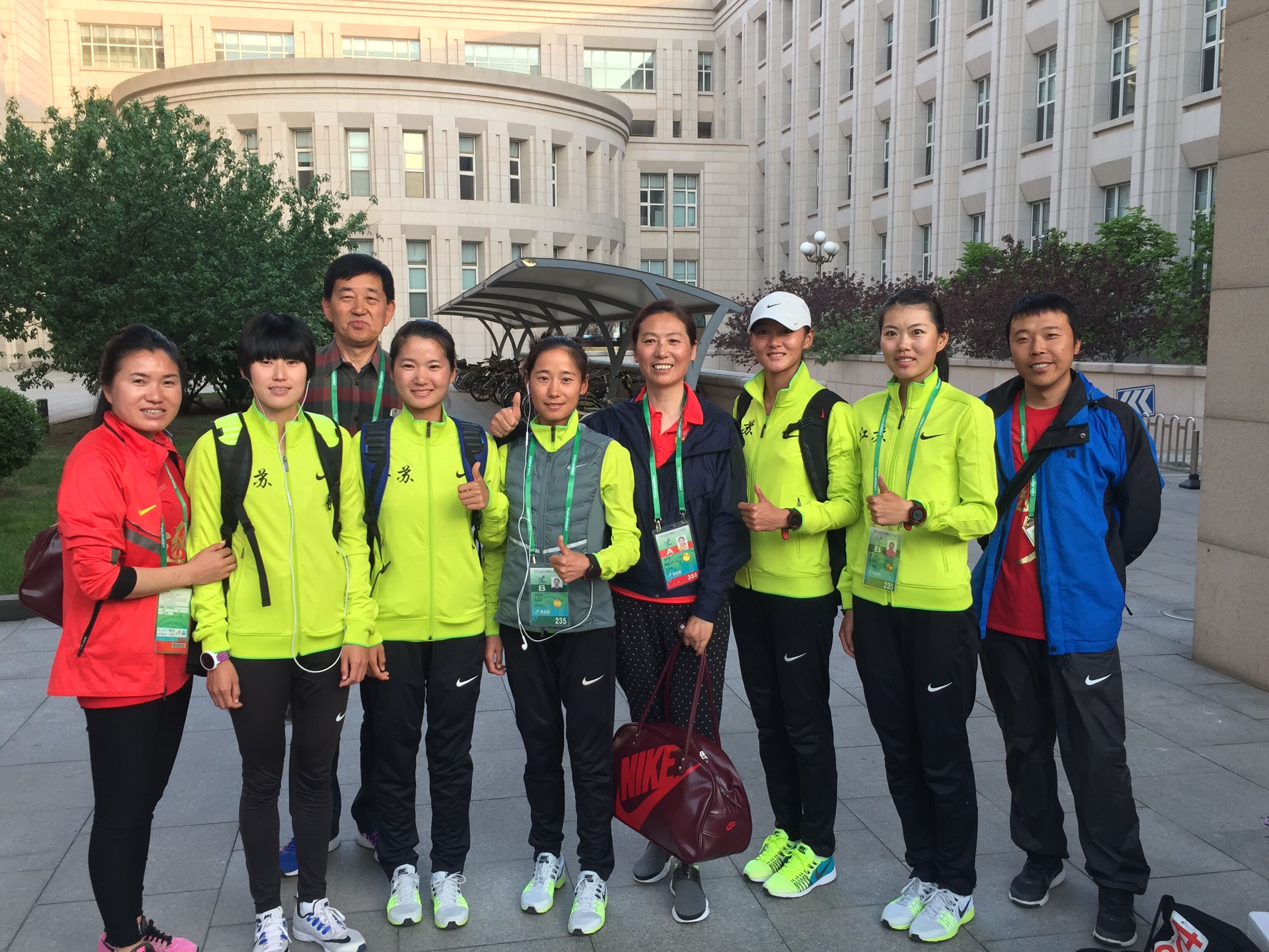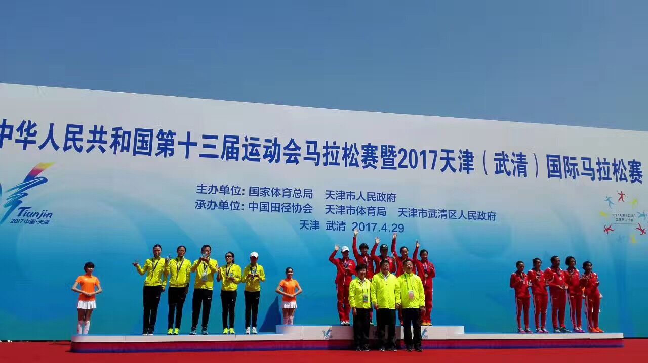 我校2013级体育教育本科学生王雪芹、魏小杰、2014级运动训练本科学生刘壮作为江苏队选手参加此次女子马拉松团体赛的争夺。当日天津的气温炎热,专业组赛比赛时气温达到26摄氏度左右,中午时分温度更高达33摄氏度,这对马拉松选手是巨大挑战
