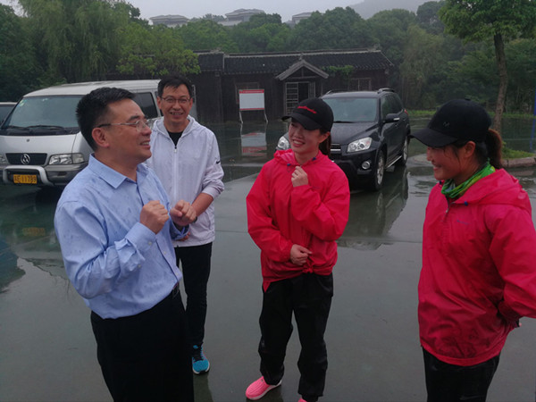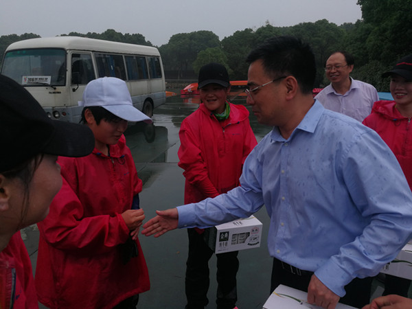 随后,他代表学校向我校四名队员送去慰问,并对队员们不畏艰辛,冒雨训练的体育精神给予充分的肯定与赞赏。同时,他嘱咐队员,在训练中一定要努力拼搏,充分弘扬苏州大学的拼搏精神,在队伍中要做出表率,也一定要注意身体健康。最后,他祝愿同学们能够在比赛中赛出风格,赛出水平,为江苏争光,为苏州大学争光!
