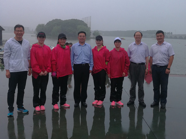 龙舟赛是中华民族的传统运动,具有2000多年的历史,近些年来龙舟比赛在全国各地广泛开展,深受广大群众喜爱,中华人民共和国第十三届运动会首次将龙舟比赛纳入群众比赛项目。6月23日下午,校党委副书记、副校长江作军在体育学院党委书记邓国林、群众体育与训练竞赛管理中心主任徐建荣和团委书记丁海峰的陪同下,冒雨前往常州市武进区太湖湾龙舟训练基地慰问我校参加第十三届全运会龙舟项目比赛的四名女队员。