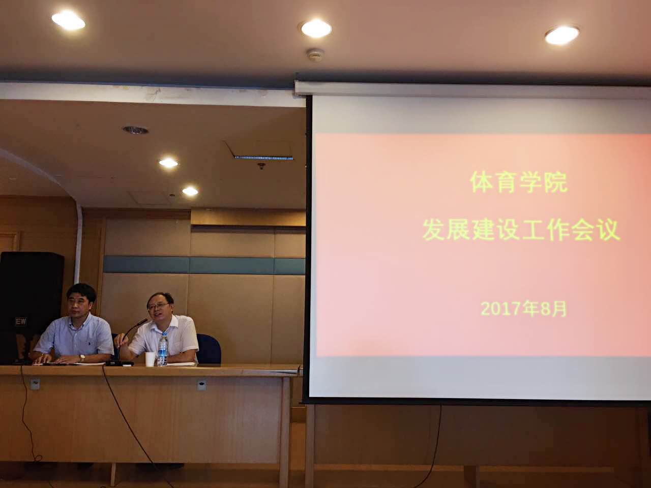 为全面贯彻党的教育方针,深入实施国家和江苏省中长期教育改革和发展规划纲要,抓住学校由教学研究型大学向研究型大学转型和我国体育学科快速发展的历史机遇,8月29日,我院于凌云楼9楼会议室召开苏州大学体育学院发展建设工作会议。全体院领导,教授,各系部及教研室主任,各党支部书记,青年博士教师,院团委、各行政办公室负责人及秘书等五十多人参加了会议。会议由院党委书记邓国林主持。
