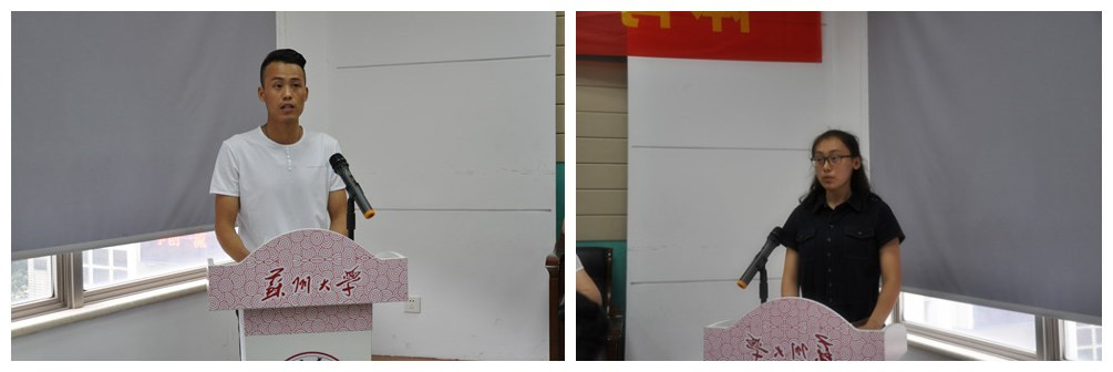 学院研究生会代主席刘国平同学作为老生代表发言,欢迎学弟学妹们加入体育学院,并分享了自己的研究生生活体验。2017级周春晖同学作为新生代表发言,表达了步入苏大读研的欣喜。