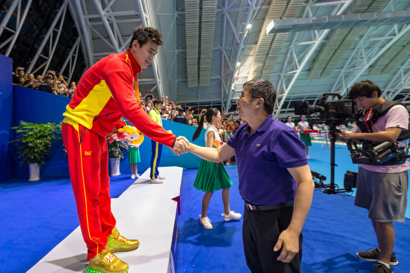 2017年9月11日下午,校党委书记江涌一行赴浙江财经大学慰问了我校出征第13届学生运动会的教练员和运动员,并作为颁奖嘉宾为获得400米自由泳冠军的孙杨颁奖,同时江书记还与孙杨的父母进行了亲切的交流,感谢他们为国家、为江苏、为苏州大学培养了优秀的运动员,为国家争得荣誉,同时也为苏州大学争得了荣誉。