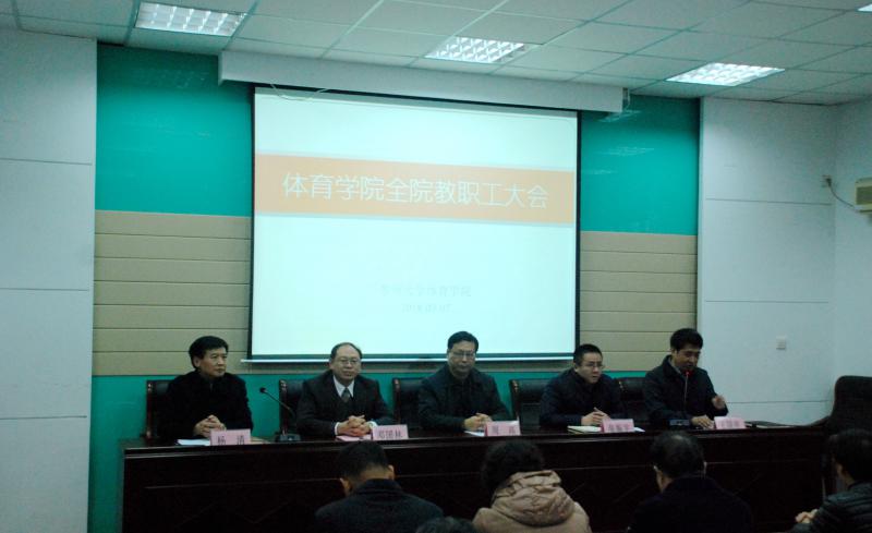 最后校党委常委、总会计师周高发表讲话,对学院发展提出了希望。一要坚持创新发展。优化体育管理体制机制,转变竞技体育发展方式,鼓励引导各类社会资源进入苏大体育,着力提高发展质量和效益。创新师资队伍建设,积极引进高端人才。二要坚持协调发展。既要重业务、重竞技,又要抓党建、抓队伍;既要重视竞技体育发展,又要重视公共体育教学;既要加快培养高水平运动员,又要持续提升全体师生员工的体质。三要坚持绿色发展,加快发展体育服务业,大力普及健身跑、自行车、棋类、掼蛋、田径、游泳、登山等运动,促进德智体美全面发展。四要坚持开放发展,配合奥运争光计划,加快国际体育合作,引进先进体育理念,提升体育教学水平,以郭丹参加平昌冬奥会并取得佳绩为契机,争取更多的苏大学子参加北京冬奥会。五要坚持共享发展,加快推进公共体育服务体系建设,努力构建功能明确、网络健全、惠及全校的公共体育服务体系,当务之急是要加快推进东校区体育场馆改造、独墅湖校区体育场馆新建。要通过扎实有效、持之以恒的工作,把苏大体育学院建设成国内领先、国际知名的体育学院。
