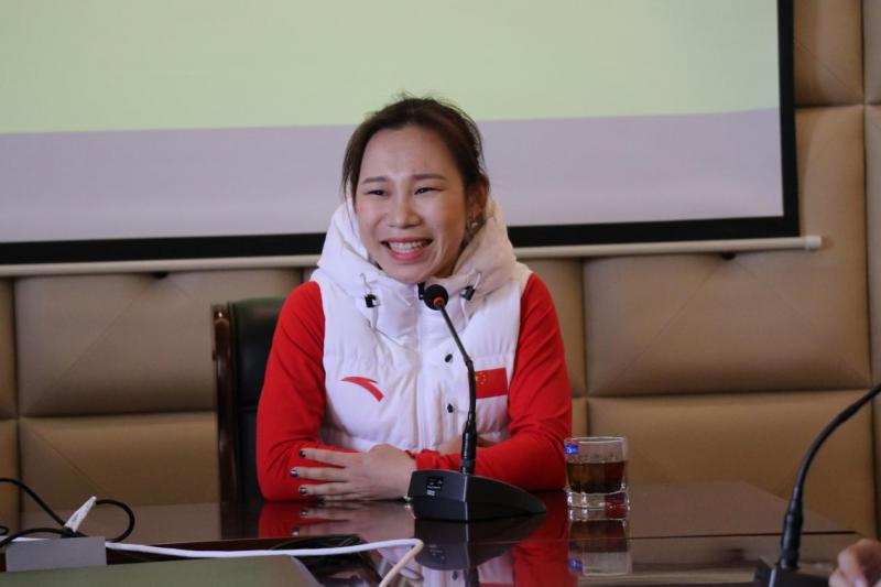 3月27日上午,郭丹从训练基地回学校就平昌冬奥会和北京冬奥周期与同学们分享交流。穿着红色上衣、白色背心与黑色运动裤,蹬着一双运动鞋,脸上挂着灿烂的笑容,这个27岁的姑娘洋溢着青春的气息。会前,郭丹与学院党政领导、班主任老师畅聊了自己的学习与运动生涯,并表示在冬奥会结束的这一年里,会花更多的精力在学习上,争取学习与训练两不误。交流会上,学生们提出了很多自己对于郭丹和体育训练好奇的问题,郭丹也就自己的经历与经验一一作出回答。