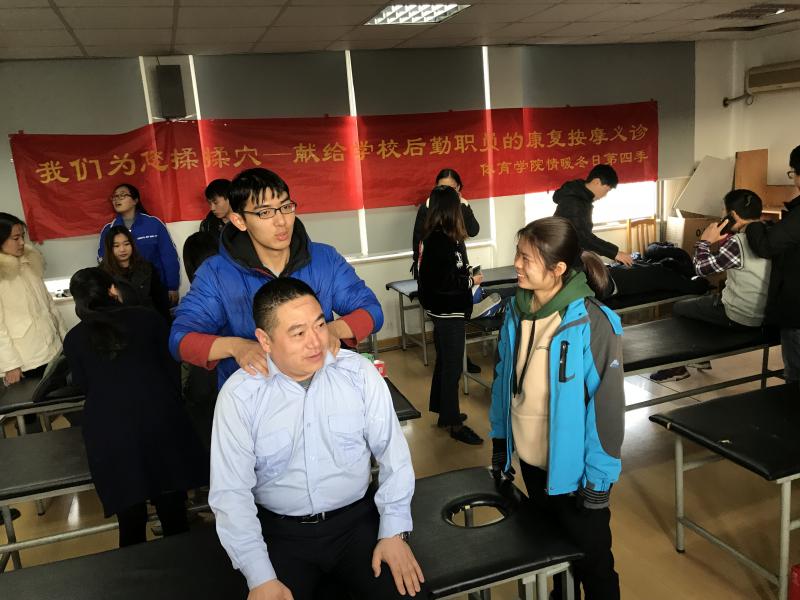 12月20日下午,我院情暖冬日第四季活动在文辉楼成功举行。本次活动主题为“我们为您揉揉穴——献给学校后勤职工的康复按摩义诊”。旨在用行动祛除寒冷,用爱心温暖冬季,让同学们利用自己所学为奋斗在学校基层的叔叔阿姨们缓解工作中的疲劳。