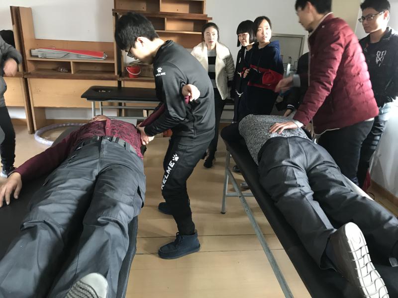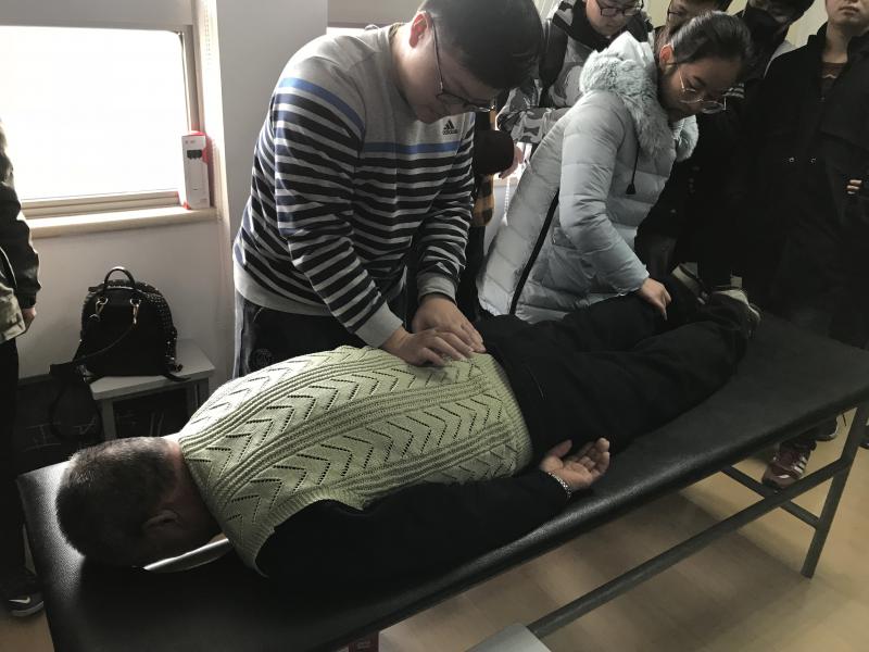 交流会后,叔叔阿姨们移步到按摩理疗室,接受我院康复专业孩子们所学的按摩放松,学子们学以致用,用实际行动来感谢他们的默默付出。