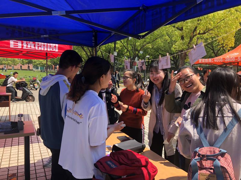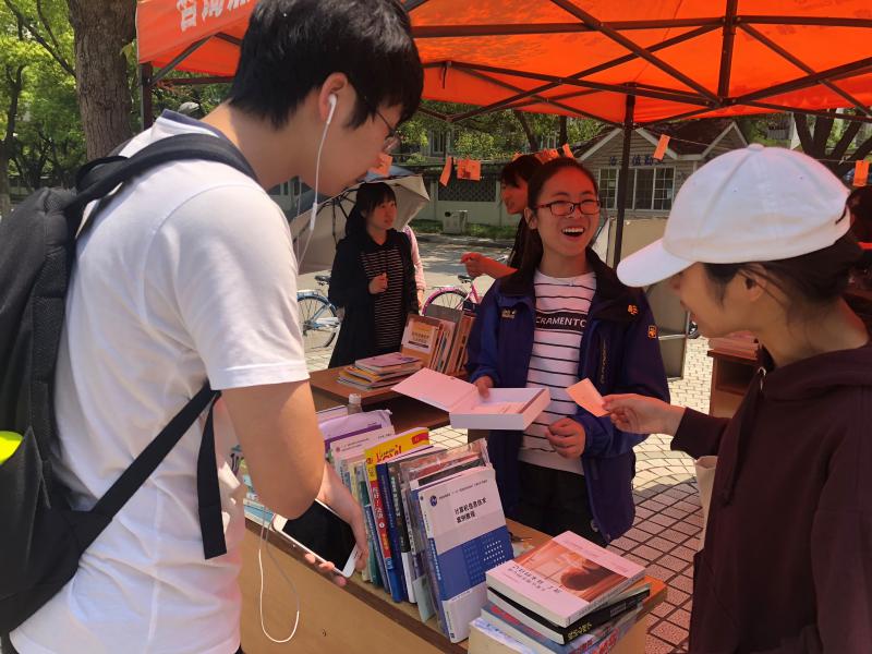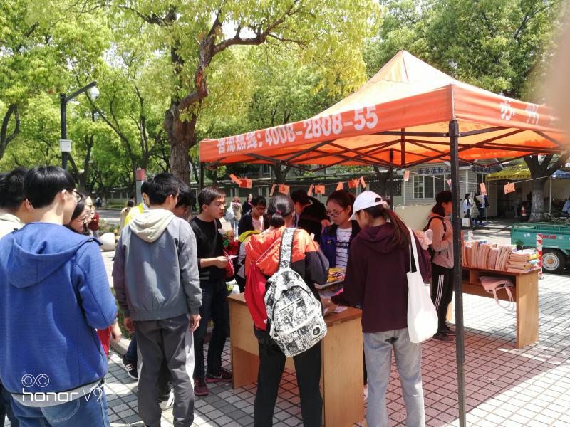 4月25日,体院勤工办联络部在教育超市前举办了御影书会。