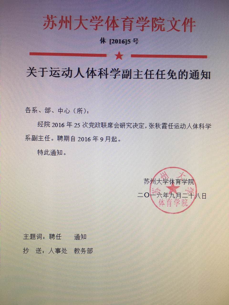 关于张秋霞同志任职的通知
