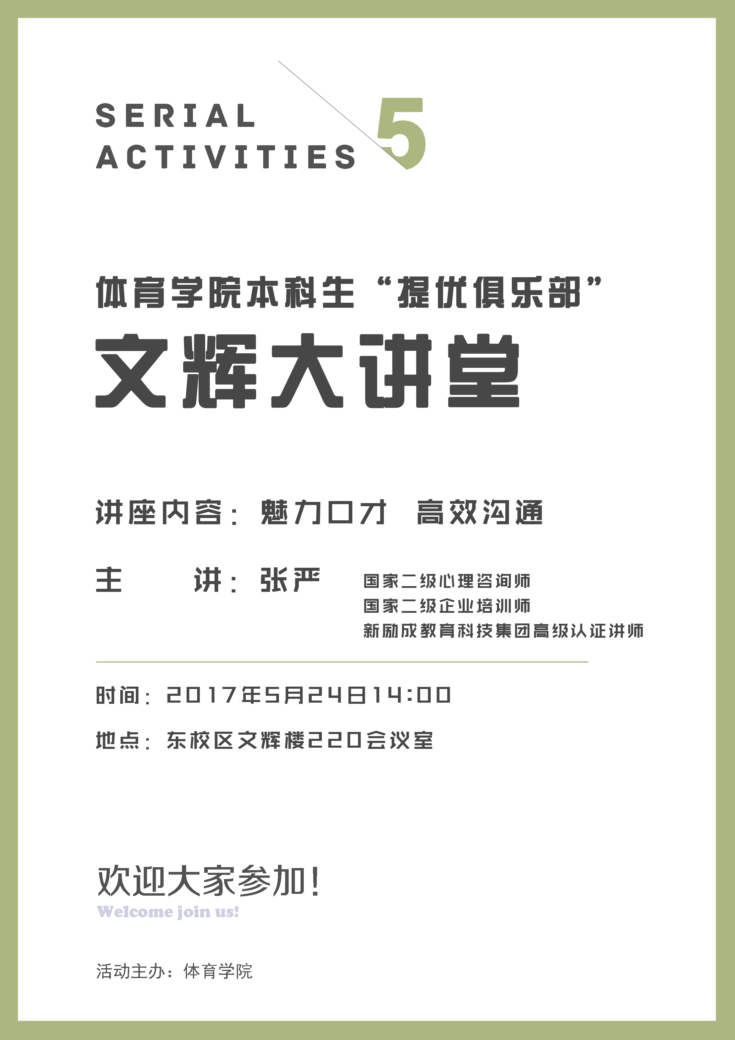 “提优俱乐部”文辉大讲堂专题讲座5——魅力口才 高效沟通