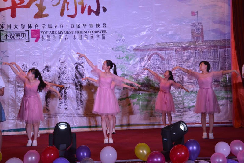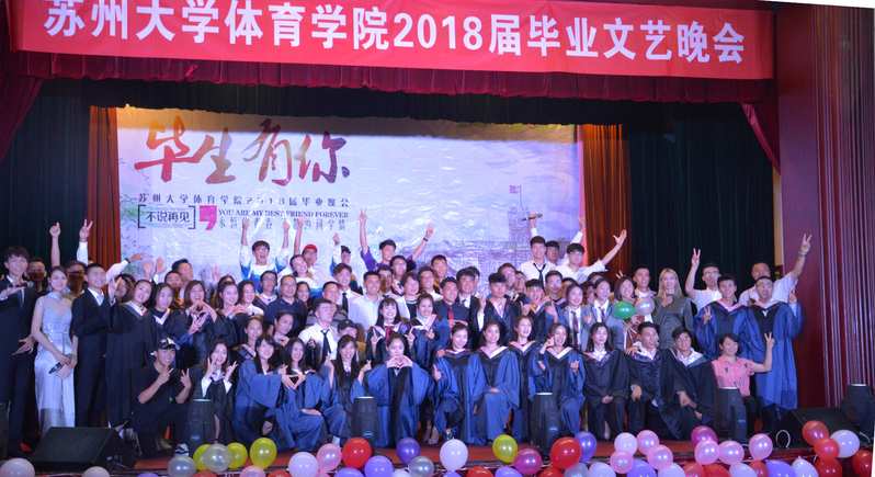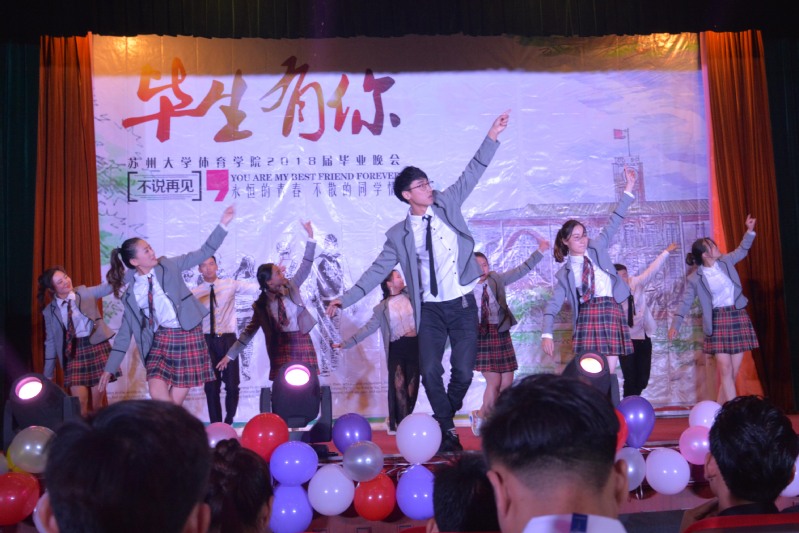 历时二个小时的晚会在观众的欢呼声与依依不舍中结束。岁月流逝,步履从容,时光匆匆,几多感慨,祝愿体育学院2018届毕业生前程似锦,一帆风顺,也祝愿苏州大学体育学院能为国家和社会培养更多的优秀毕业生,更多的体育人才。