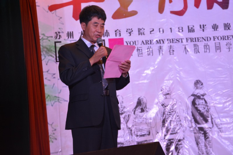 晚会中场,体育学院院长王国祥教授寄语,表达了对即将毕业的2018届毕业生的祝贺和勉励。