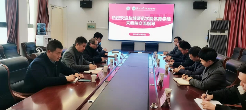 2021年12月3日下午,盐城师范学院体育学院院长戴俊、党委书记祁龙祥等一行6人到我院进行交流访问。