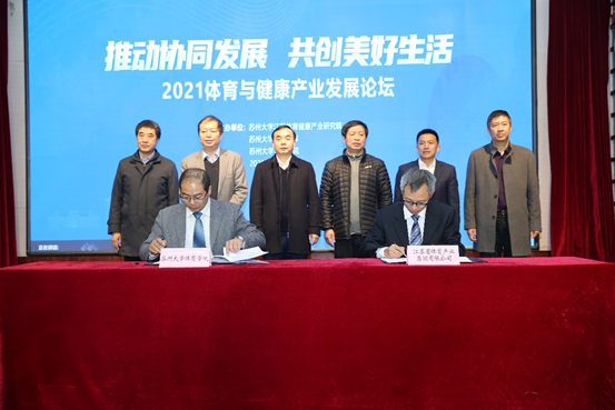 在开幕式最后阶段,在与会人员的共同见证下,江苏省体育产业集团有限公司与苏州大学体育学院、苏州大学江苏体育健康产业研究院与苏州三六六教育投资有限公司,分别进行了签约合作仪式。合作方将在进一步加深了解的基础上深入合作,通过强强合作,集聚资源,集中目标,集成创新,共同推动江苏体育产业与健康产业高质量发展。
