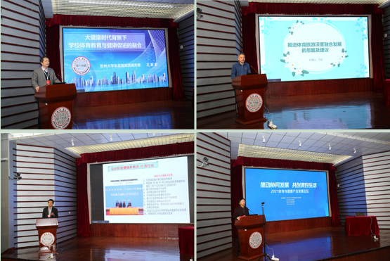 论坛主旨演讲环节由苏州大学体育学院院长陶玉流主持。王家宏阐述了大健康时代背景下人们对健康的需求,提出了体育在健康中国建设中的责任和实现路径,并从学校体育教育与健康促进融合的角度出发,对学校体育教育的发展现状、路径和重点领域进行分析,提出了展望。丁宏从体育旅游产业融合发展的角度,介绍了当前我国体育旅游产业融合发展的主要趋势,阐述了江苏省体育旅游的发展现状以及深度融合面临的主要挑战,提出了推动江苏省体育旅游高质量融合发展的相关建议。王国祥从 “构建运动促进健康新模式”角度出发,围绕四个关键词 “健康” “全”“关口”“新观念”,对“运动促进健康新模式”的核心问题进行阐释,并运用“运动促进健康新模式”对青少年近视问题进行了思考分析。朱为模通过视频方式与参会人员进行交流,他用大量科研成果证明有氧能力作为临床生命体征的重要性,并提出有氧能力作为新生命体征在保险业中具有杠杆作用。