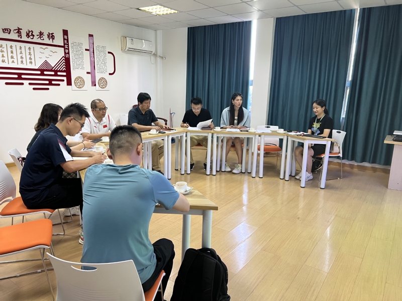 百年大计,教育为本;教育大计,教师为本。在第39个教师节来临之际,为促进新时代新教师的专业化成长,让其了解熟悉学院教育教学环境和教学常规,躬耕讲坛,提高教育教学能力,2023年9月8日,体育学院在院教师发展中心举行“新教师入职‘第一课’”的岗前培训。学院党委书记朱建刚、院长陶玉流共同担任授课,近一年入职的郑姝音、刘广飞、韩政、王岑依、张磊5名新教师参加了本次培训学习,院教师发展中心陶小娟老师主持了活动。