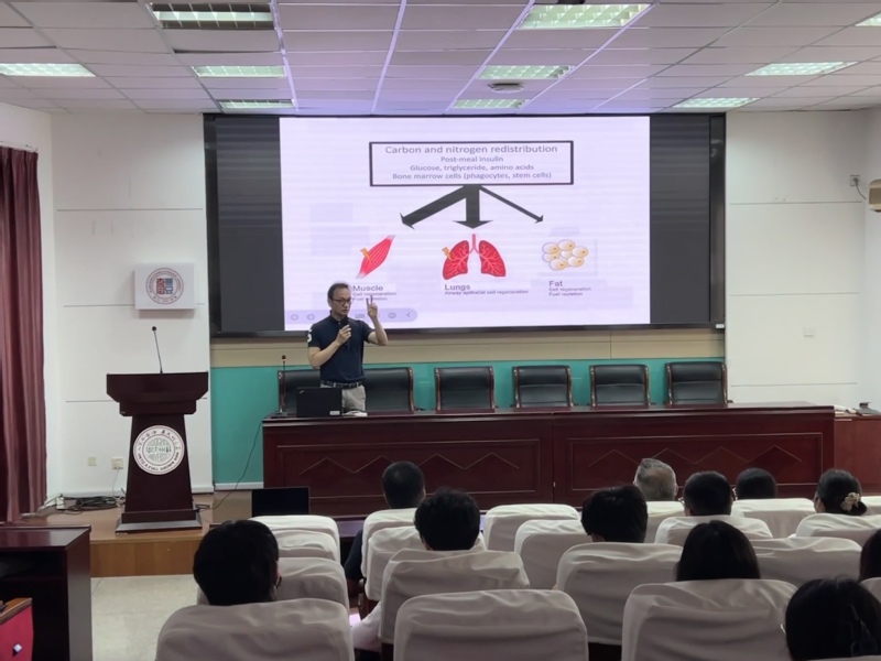 首先,我院讲座教授、台北市立大学体育学院运动科学方向教授、博导、国际知名运动营养学专家郭家骅教授做了《运动营养:免疫力与健康长寿》主题讲座,郭教授详细介绍了运动减脂的前沿科学证据与实操做法,纠正了很多人在减脂与燃脂方面的认知误区。