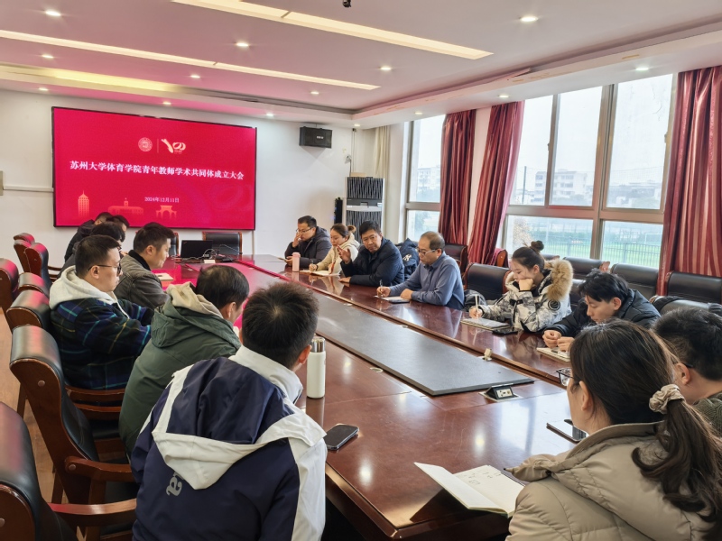 2024年12月11日,苏州大学体育学院青年教师学术共同体成立仪式在文辉楼217举行。学院党委书记朱建刚、院长陶玉流以及青年教师参加了会议。会议由陶玉流主持。