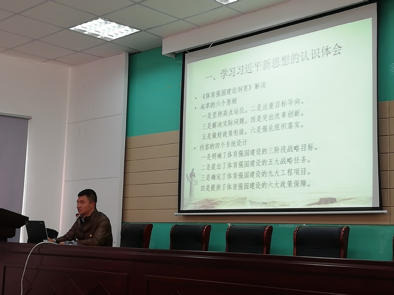 党委副书记、副院长丁海峰同以“不忘初心、牢记使命,为加快体育强国建设历练本领”为题讲专题党课,在深入学习习近平新时代中国特色社会主义思想和《体育强国建设纲要》的基础上,从“汇报学习习近平新时代中国特色社会主义思想的心得体会”、“现阶段体育强国建设的差距与不足”、“体育强国背景下对高校师生的要求”以及“培养符合时代要求的体育人才”四个方面作了深刻的解读。丁海峰指出就体育强国建设我院存在的学生党员对自身要求不高、师生对《体育强国建设刚要》解读不充分、对体育强国建设责任意识不够等问题,并从保障机制、资金投入以及工作责任落实三个方面给出了解决办法,充分发挥学生党支部在思想引领、服务学生、建设体育强国工作方面的主体作用。