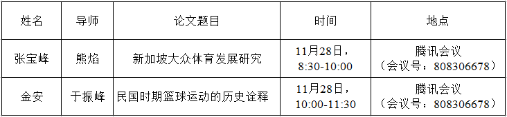 2020年下半年体育学院博士研究生学位论文答辩日程安排