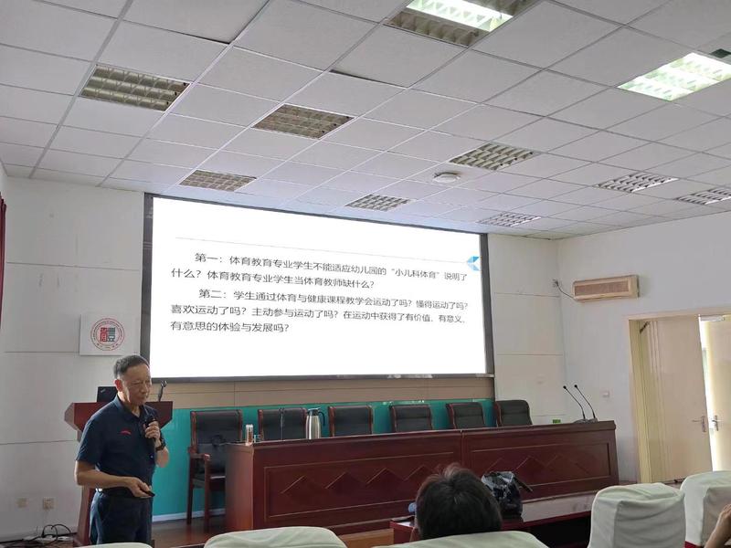 潘绍伟教授做了题为《基础教育体育与健康课程改革对体育教育专业的呼唤》专题讲座,主要围绕基础教育体育与健康课程发生的主要变化、基础教育体育与健康课程改革对体育教师的新要求以及改革对体育教育专业的呼唤三个方面进行讲解。他指出,在基础教育体育与健康课程改革的大背景下,体育教师要不断提升自身素养,加强对专业价值的认识,提升体育课程与教学知识水平及创新能力。