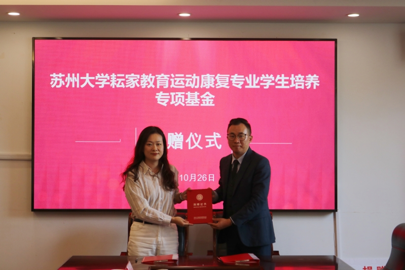2023年10月26日下午,苏州大学耘家教育运动康复专业学生培养专项基金捐赠仪式在文辉楼217举行。