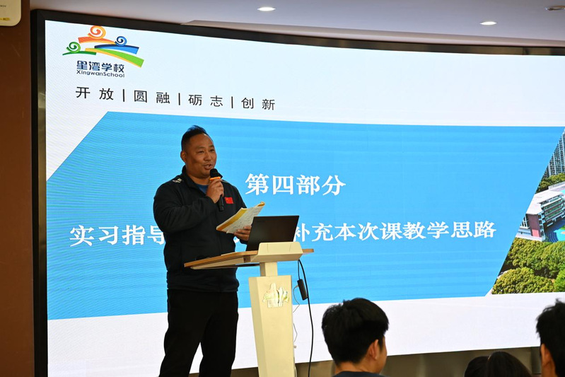 最后,陶玉流院长做总结发言。他首先对星湾学校提供的优良实习环境和指导老师的悉心指导表示感谢,同时也对所有的实习生殷切嘱托——把握实习机会,将所学所练运用于教学实践;发现自身不足,在实习工作中发现缺点;善思勤问,尽快查漏补缺,并做好总结规划。他说,教育是“一棵树摇动另一棵树”的事业。希望所有实习生以此为新起点,永葆教育热忱,深耕教学艺术,在未来的教育生涯中持续发光发热,成长为卓越的人民教师!