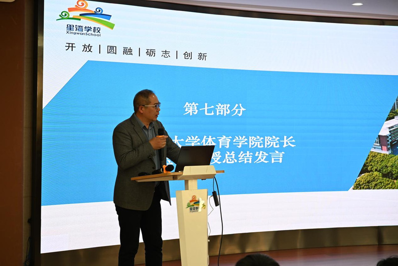 公开课开始前,星湾学校李妹红校长对前来观摩公开课的苏州大学体育学院全体师生表示热忱的欢迎。她充分肯定了6位实习生在星湾学校的日常工作态度和能力,详细介绍了星湾学校办校18年来,从构建体教融合教学体系,打造高质量校本课程,拓展体教融合发展路径,搭建多发展平台,优化体教融合培养模式,完善“一校一品”建设等方面分享了学校体育的星湾经验。星湾学校将继续深化与苏州大学体育学院的合作,不断完善“高校-中学”协同培养机制,共同为基础教育培养更多的优秀体育师资力量。